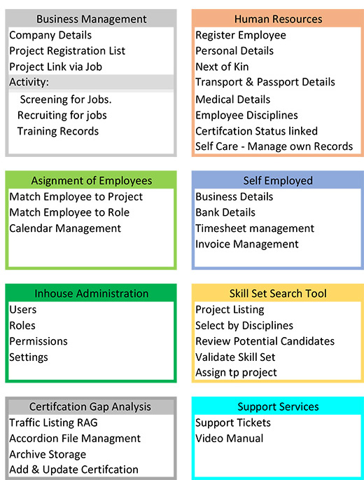 Cerium24's logic is based on the registration of a labour list for business use. The primary aim is to ensure that the certifications of competencies are recorded and maintained. Sub-Contractors are separated from In-house Personnel and Self Care status is added giving access to the data held by the business. The system will provide login credential for access to the individuals HR record only.