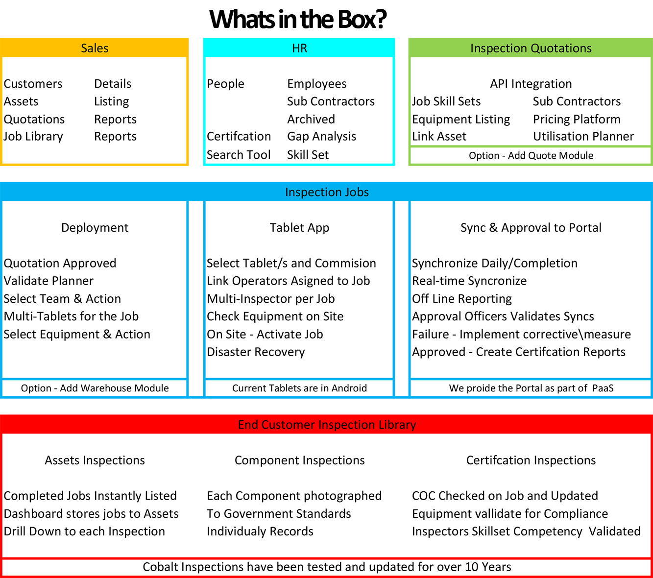 Cobal t’s SaaS solution is based on the creation of a successful inspection solution developed for the Oil Industry. The key focus was to ensure that Customers or Asset owners could be assured that the implementation of a critical inspection was not only delivered to the required standard, but a transparent reporting system gives access to 4Cs.